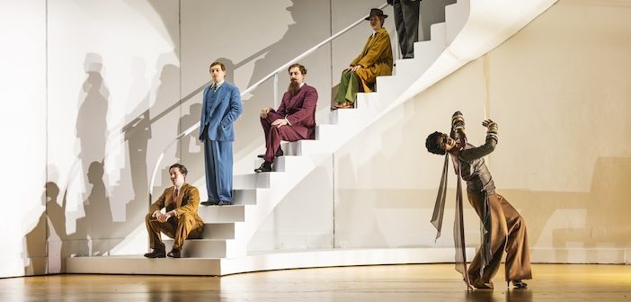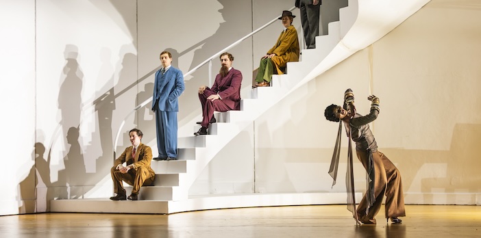 There’s Emilio (Ru Charlesworth doing an impersonation of Man Ray) who starts by wooing and ends up warring (literally) with Partenope. And then there’s Armindo, miserable in his state of unrequited love, sung by Jake Ingbar (another extremely fine countertenor). It’s not only his voice that is noteworthy either. Ingbar’s descent of the staircase is worthy of a contortionist and he’s not averse to the odd cartwheel or spot of tap dancing either.
