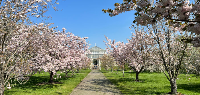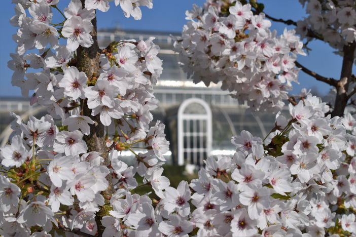 A plethora of pastel shades will burst into life alongside the Royal College of Music’s soundscapes as you wander along Princess Walk, transformed by magnolias and Cherry Walk, Asano Avenue where naturalised tulips below and the chrysanthemum-like pink flowers of the Japanese cherry trees (Prunus ‘Asano’) above create a painterly scene with the backdrop of the iconic Temperate House, along with the Japanese Landscape with its great white cherry (Prunus ‘Taihaku’).
