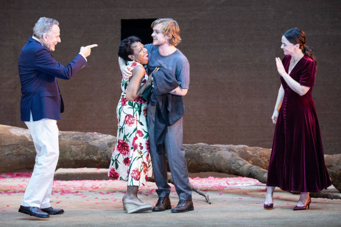 A sensitive young man, in the habit of towing his father’s line, Chris holds firm when Joe urges him to give up the idea of marrying Ann for Kate’s sake, recognising that it is only her faith in a possible miracle which sustains her. Cranston and Jean-Baptiste, the two most senior actors in this ensemble, are generous enough to allow the other cast members their moment to shine, which indeed they do, including Cath Whitefield as the jealous doctor’s wife, Sue Bayliss, who amusingly asks Ann to move away if she marries Chris: for she observes how dissatisfied the doctor is and how he has drooled over the beautiful Ann. Aliyah Oddfin is a ray of sunshine as Lydia Lubey, though she is jolted out of her contentment in family life when her old flame, George, played with disturbing intensity by Tom Glynn-Carney, turns up to stop his sister Ann marrying Chris.