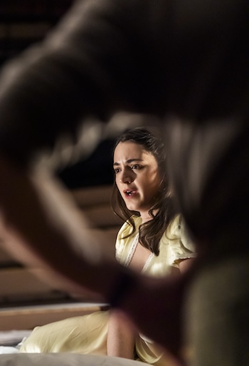 Jordan Fein’s bold production has an urgency that switches between dimmed lamplight around the bedridden Sylvia to enveloping the audience in the stage’s brightest lights. There’s no interval and it moves at pace, the actors often on seats that resemble the audience’s own and sometimes becalmed behind a window watching the action. The cast is uniformly excellent including the smaller roles – Nancy Carroll as Harry’s wife Margaret, Juliet Cowan as Harriet and Nigel Whitmey as Philip’s boss.