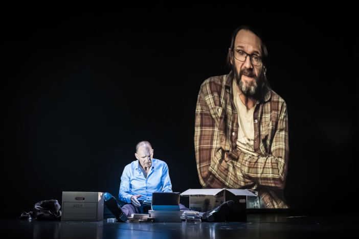 Running for 1 hour 30 with no interval, this certainly helps to create an intense experience, with each scene revealing a little more about Larry’s confused, depressed state of mind, partly due to a career that’s going down the toilet and his complicated relationships with his mother, former flame and twin brother, Richard. We only ‘meet’ the reclusive, bearded Richard (also played by Fiennes) via a pre-recorded film projection intended to be a live video call between the pair. Although Fiennes is fully convincing when interacting with a computer screen, given that Ben is by far the stronger of the two male roles, it’s disappointing not to see Fiennes act the part on stage until the finale.