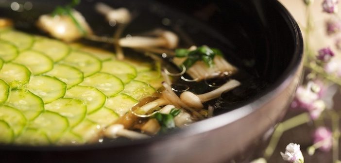 The underlying concept of Humble Chicken is a tasting menu (if you count all the “snacks” there are 14 courses) that you have with a flight of sakes or a wine-sake mix (non-alcoholic alternatives are available). Fish, as you would expect, predominates though there is a sukiyaki “main” course featuring Aberdeen/wagyu beef. Arriving slightly early, we were offered a glass of bubbles while we chose the ceramic bowls for our sake and watched, fascinated by the chefs cooking, arranging and explaining the plates for other diners around us. This isn’t that flamboyant Japanese style of cooking that was so popular a few years ago, all flames and flashing knives. This is delicate, much of the arranging done with chopsticks, a kind of Zen cuisine. This is very clear from the first dish.