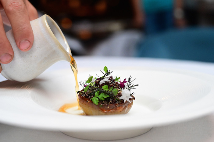 ‘Greece featuring Italy’ was the dish I would’ve snapped and ‘grammed such was the spectacle: a substantial conch lined with dainty British whelks and filled with a take on a bouillabaisse inspired by a traditional Greek Kakavia soup involving sea water, a dozen vegetables and six different spices. Asimakis’ Special Dish was comparatively tiny, but packed a punch with Chicken of the Woods mushroom, Jersey milk curd and caviar. Creamy dishes that paired wonderfully with a rosé.