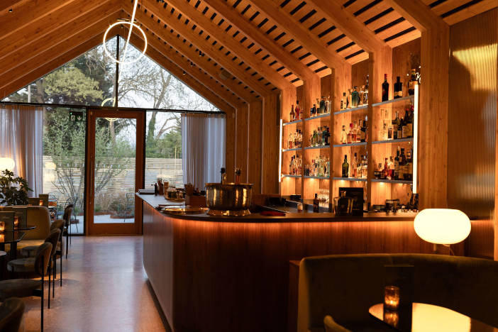 Chris Bagot Architects carried out the superb reconstruction and extension of the former Michelin-starred Royal Oak, previously owned by broadcaster Sir Michael Parkinson, with a Californian-inspired aesthetic offering guests laidback luxury. Designed to be both a destination in its own right and a great way to kick off or conclude lunch or dinner here, The Braywood’s spectacular bar, featuring an impressive vaulted ceiling and comfortable banquette seating takes on a cosy cabin feel in the winter months when the wood fire is stoked with logs.