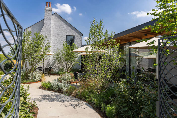 Welcoming non-diners who fancy dropping by for a tipple, the bar is the perfect partner to the light-filled flat-roofed 70-cover dining room with its feature skylight and striking picture window created from a single piece of glass to offer uninterrupted views of the garden. Bringing the outside in was integral to the design of the restaurant, with natural wood and exposed brick contrasted with plants to soften the Scandinavian-style minimalism, so too the warm lighting which transforms this lunchtime oasis into a seductive space come the evening.