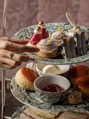 Sometimes bigger really is better — especially when it comes to Christmas trees. Towering a neck-cracking 67ft and adorned with 100,000 twinkling lights and dancing snowflakes (yes, you read that correctly), Pan Pacific London is pure catnip come Christmas. The dedication continues inside, where the sleek Singaporean hotel brand serves one of the capital’s most exquisite festive teas. By day, a serene retreat; by night, a spirited cocktail bar, the Ginger Lily Lounge finds its most charming guise in the afternoon, hosting its signature tea.