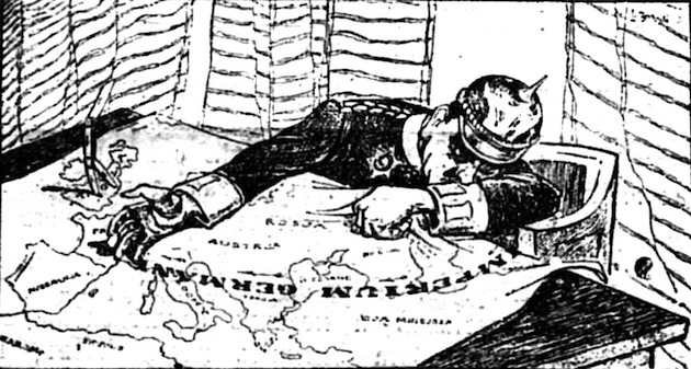 bloodthirsty_hun_cartoon‘Ha, ha,’ said the first, fat and bullet headed, ‘I zink zat you have, in ze freiherr, your Spiel erfüllt.’