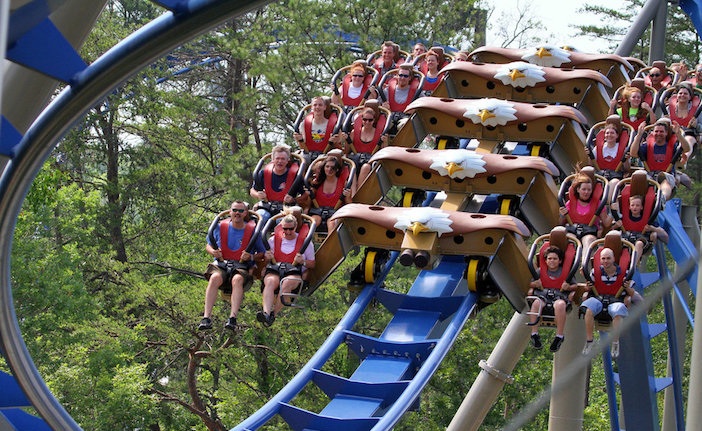 This is my third time riding the ‘Wild Eagle’.  It is all over in about a minute and half. When I stagger down to the photo booth, to see what face I made as I confronted the abyss, I discover that I (once again) failed to keep my eyes open. The 11 year old in the seat next to me is checking his iPhone.