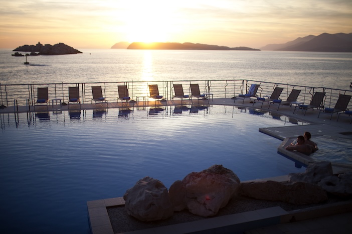 The spa’s outdoor jacuzzi is another wonderful spot to watch the sunset. As the sun begins to dip, the Adriatic comes alive, turning sea and sky into shades of pink, orange and deep crimson, accompanied by the gentle gurgling of the bubbles under the neon lighting around you.
