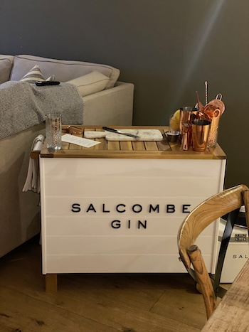 Returning from the spa, at the appointed hour, we found Crystal awaiting us. A portable bar had been assembled in the lounge, courtesy of Salcombe Gin, complete with all necessary accoutrements. From a menu spanning gins, tonics and cocktails – including alcohol-free options for the small but vocal contingent – we made our selections.