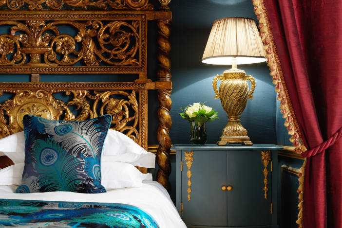 Judy Garland, who found The Gore “a home away from home” was also a frequent guest during the Swinging 60s when she had a series of dates at the London Palladium and the Hippodrome, then the city’s premiere cabaret club known as ‘Talk of the Town’. Stepping into the Judy Garland Suite is indeed somewhere over the rainbow, with its turquoise blue walls, stained glass windows and the famous gilded bed which Judy commissioned and had transported from America. The bed, which Judy gifted to the hotel, is recessed with silk walls and canopied with dramatic burgundy red curtains: making you feel as though you’re on stage when lying in bed, and as if symbolic of Judy’s life as one of the most famous women in the world who had been scrutinised, publicly and privately, by the media since her teens.