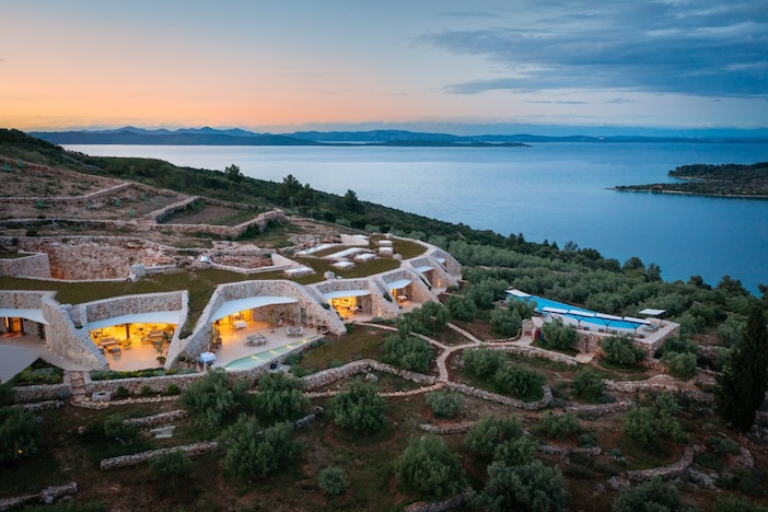 Built directly into a hilltop, the hotel takes its cues from the dry‑stone walls that terrace the surrounding olive groves. All excavated stone was reused in the construction, meaning the building feels less imposed on the landscape than revealed from it. Rough‑hewn stone walls mirror the rock face behind the Grotto restaurant; modern lines sit comfortably alongside ancient techniques. Villa Nai is the result of a close collaboration between the owner, an engineer by trade, and the architect Nicolai Bašić – the award‑winning mind behind Zadar’s Sea Organ – and you get the sense this was very much a passion project. It’s an architectural playground, albeit one with extraordinary restraint.
