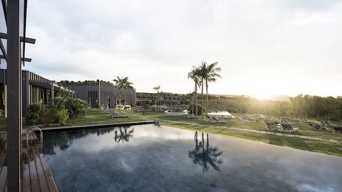 On first arrival, the scene could be likened to an alternative universe, where happy families exist in perfect oasis surroundings. From reception – the only visible building atop the ground, figures in their (mostly) twos, pave their way in zombie-like states between 90 bedrooms and suites, to the resort’s calling card, The Spa, wearing hooded, soft-brown robes and white, towelling slippers. Slow travel here is most-definitely encouraged.