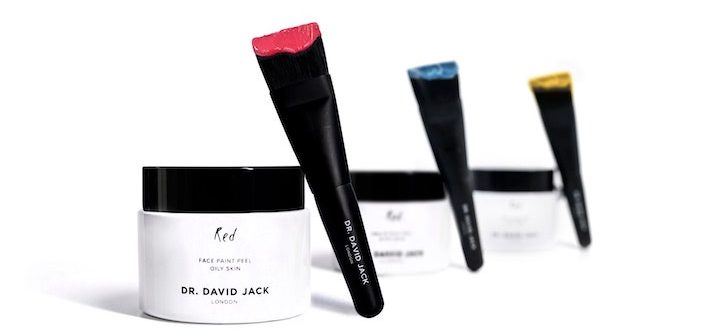 The newest elements in Dr Jack’s range are his Face Paints. And they do mean “paints” quite literally. Your kit includes a super-soft brush for applying the paint (it’s a cream with the consistency of oil or acrylic paint) on to your face and a black face cloth for washing it off. There are three in the range. Red is for oily skin to reduce sebum production, yellow is for skin of colour and blue is for dry skin, helping to reduce redness and inflammation. I tried the blue one and the colours really are quite bright – my husband said I looked like an extra from Braveheart. The paints are actually peels and each one contains a natural acid – in the blue one it’s Hyaluronic Acid (again), along with Azeleic Acid, Vitamin B5 and Ceramides. The peel is the level of intensity you would expect to find in a spa, so quite a powerful treatment but very safe and easy to use – paint on, leave for 20 minutes and wash off. And then just look plumped and dewy.