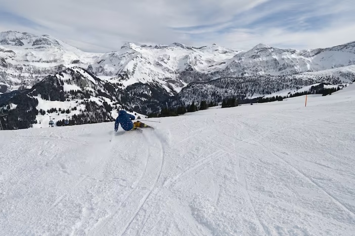 From the village, a gondola rises to Metschstand, affording sweeping views of the valley – keep an eye out for chamois punctuating the snow. Although the resort sits comparatively low, the surrounding meadows mean it doesn’t need excessive snowfall to be skiable. It’s the topography that does the work: the variety of valleys, aspects and contours making for a pleasing mix of piste styles. I spend the morning with my guide crossing over to Adelboden, saving Lenk’s side for after lunch.