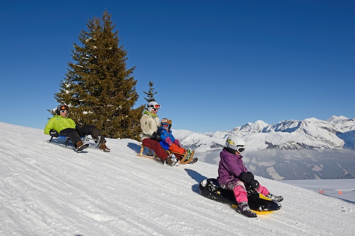 Child-friendly, yes, but not only for children. There are sledging runs, too – for big kids as much as small ones. Traditional wooden sledges or modern ergonomic designs: there’s more technique than you might assume, steering and braking with your heels, but once you get the hang of it, it’s an absolute riot. Assuming you don’t come off while trying to film it, of course.