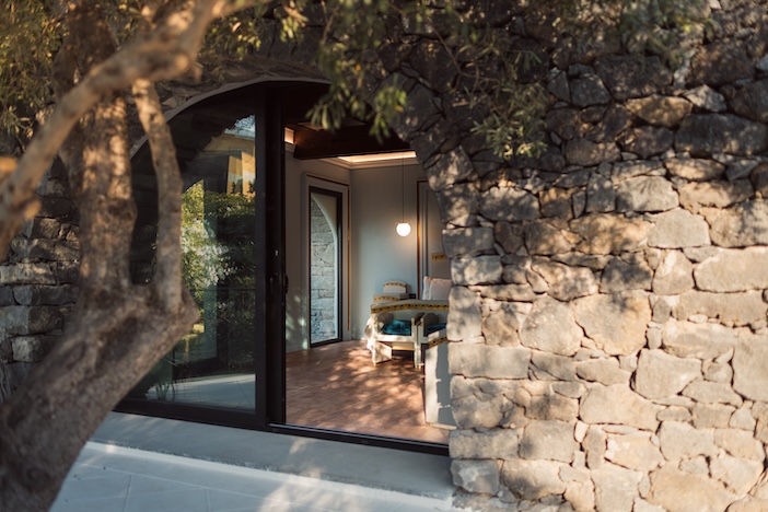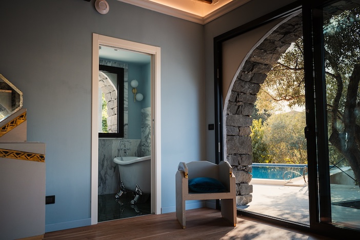 Through a lava stone archway, the Palazzo inside is an Aladdin’s cave of colour – modern touches brush with more historic items of furniture, fabric and facilities in rooms that have been gently renovated to serve guests of more modern disposition. Tassel-clad gold and ruby upholstery and solid ceramic bathrooms meet with fresco-decorated ceilings and hand printed wallpaper, while paintings of Puglisi ancestors chime with more abstract modern works of art that Alfio has personally curated. Principato is responsible for the architectural side of things, lending her philosophy hand to the rest of the interiors and hospitality at large.