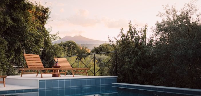 There are six bedrooms, each themed around film, music or physical art, and are mostly modern, with two belonging to the older side of the house. Overlooking the garden are two newly built cottages, flanking a room housing the bar and the recent addition of an infinity plunge pool, with open views that gaze onto Mount Etna puffing away in the distance. From here the town’s seven church spires loom, glowing orange as the sun sets.