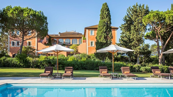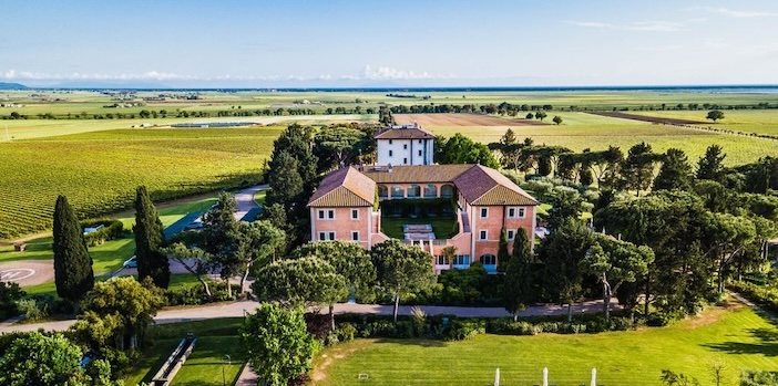 Accessed via a theatrical parade of centuries-old cypress trees and maritime pines, this idyllic estate —which once housed an entire village — is now under the ownership of the Moretti family. Visit today and you’ll find the five-star L’Andana Resort, complete with a Michelin-starred restaurant, winery, driving range and a bells-and-whistles ESPA spa.