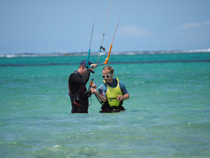 As daunting as this experience sounds, several elements ensure that this seemingly reckless activity is as sure as learning to ride a bike. For one, I’m in Mauritius. As an island it’s known for its kite-surfing. Indeed, you might even say it’s designed for kitesurfing. Its east coast in particular is wrapped by a mile-wide lagoon, and bordered by reefs, ensuring you get all the benefits of the wind, but none of the waves. Where we are, on the south east, is on the windward side, with most winds being onshore, so it’s perfect for first-timers. Little surprise that it’s here our instructors, Jerome and Dom, themselves pioneers of the sport, have chosen to set up shop. And, thus, I’m in the hands of two of kite-surfing’s finest.
