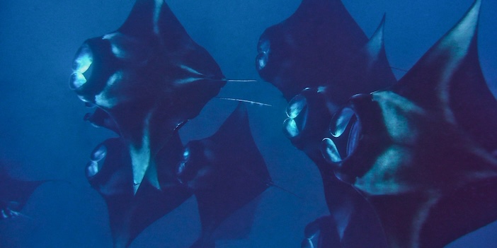But these are friendly creatures, here to feed not on us but the plenteous plankton surrounding the fish. Despite their huge size, the mantas are graceful as they swim around us, sometimes in a line as they pass but also in random patterns, occasionally inquisitive about our presence and swimming up to us. We stay in the water for around 45 minutes until the sea begins to swell, then swim back to the boat, everyone amazed by what they have seen and aware of how lucky we are to have experienced the manta rays in such large numbers and at such proximity.