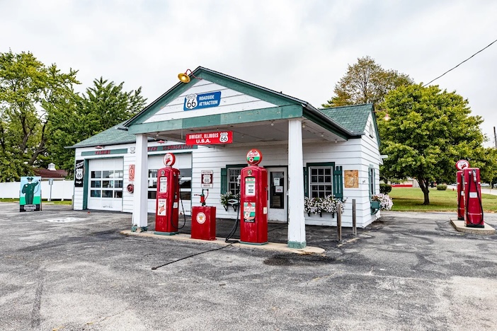 Diners aside, the other pit-stops that are immortalized on Route 66 are, unexpectedly, gas stations. A short 25-minute drive away, in Dwight, is Ambler’s Texaco gas station. The longest-serving gas station on Route 66, it operated for 66 years before closing in 1999.