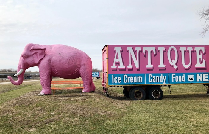 The larger-than-life nature of Route 66 makes it fitting to find larger-than-life statues along the route. Arguably, the most famous is the Gemini Giant in Wilmington, which harks back to the 1960s, when the American public was entranced by space exploration. Used as advertising billboards, these giant statues have outlived the institutions they were promoting, and in the case of Gemini Giant, the Launching Pad Diner, which has long since closed.