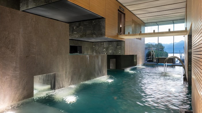 On the shores of similarly azure waters, this time belonging to Lake Maggiore, as far north as the Italian-speaking map will take you from these most southerly horizons, I was recently party to another sauna expedition. This time, it was at the Termali Salini and Spa in Locarno, in the Ticino region of Switzerland. Here, day trippers can take advantage of the outdoor infinity pool with mountain vistas that looked like they’d been engineered in ‘green screen’, to sit under blasting jets of water to dissipate shoulder knots, and relax in the trio of bubbling hot tubs that fall like an architectural cascade within the building’s interior.